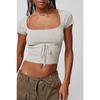 Women's Spice Girl Temperament Square Neck Short Sleeve Knit Short Sexy Lace Up Neckless Knit Top