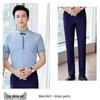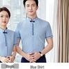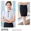 This women's professional shirt set features a new Chinese style, perfect for a polished and elegant look in the workplace. Made entirely of high-quality polyester, this ensemble offers comfort and durability. The design includes a stand neckline and short sleeves, providing a chic and sophisticated appearance suitable for receptionists and other professional roles. Ideal for maintaining a refined image, this uniform workwear set is both stylish and practical.