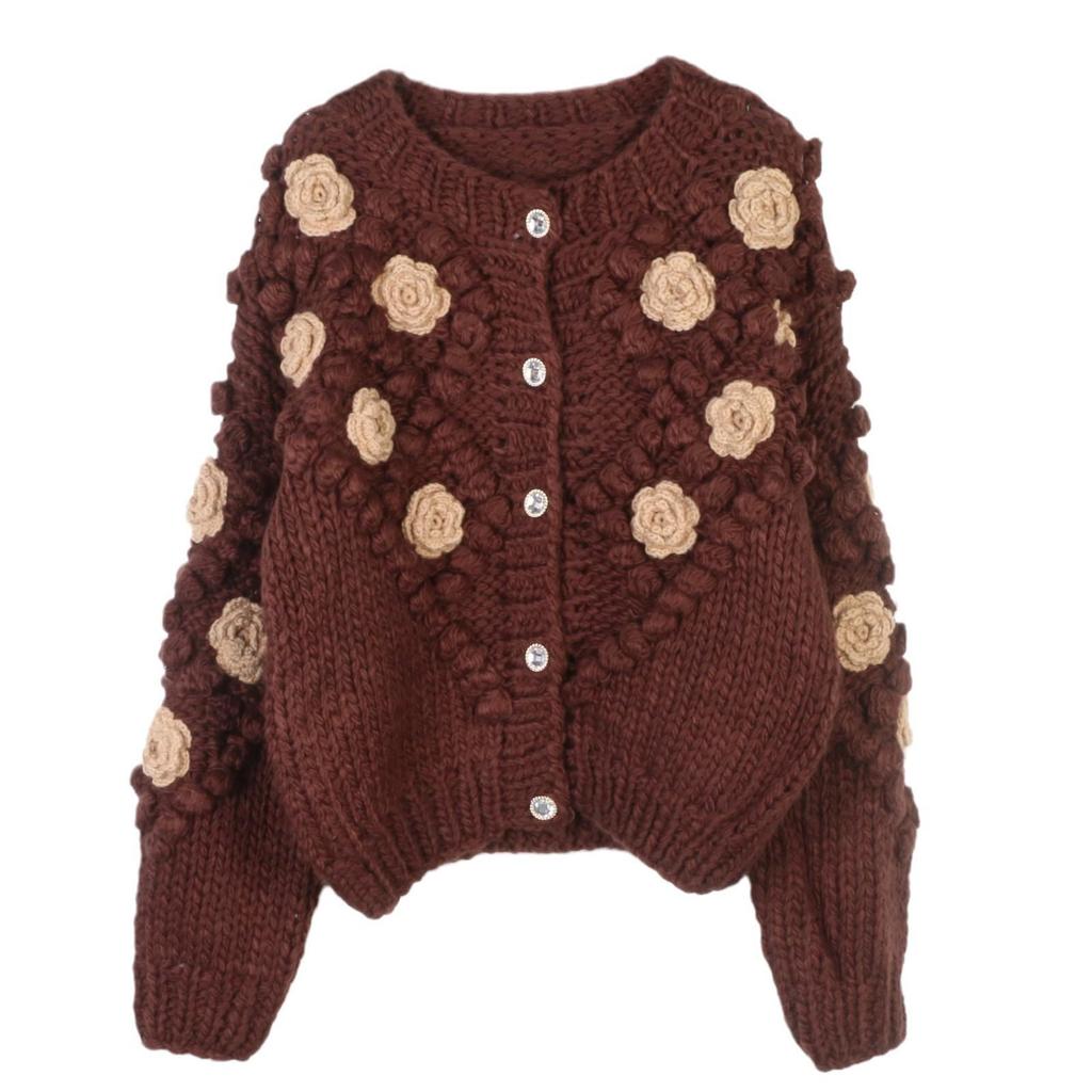 French Chic Age-Defying 3D Floral Chunky Knit Cardigan – Autumn/Winter Sweater Coat