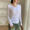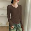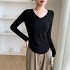 Enjoy both comfort and style with this slim-fit, long-sleeve shirt perfect for the autumn and winter seasons. Crafted from premium modal fiber, this shirt offers a soft and smooth feel against the skin while ensuring optimal breathability. The elegant V-neckline adds a touch of sophistication, making it a versatile piece for any wardrobe. The arc hem design provides a modern twist, making it suitable for both casual and semi-formal occasions.