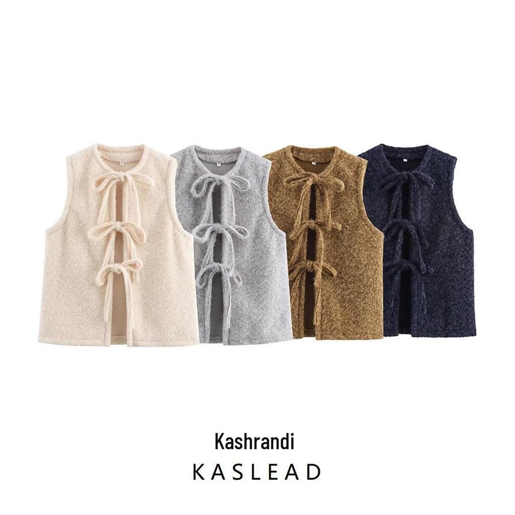 2024 Winter Women's Fashion: European & American Style Tie-Up Sleeveless Vest
