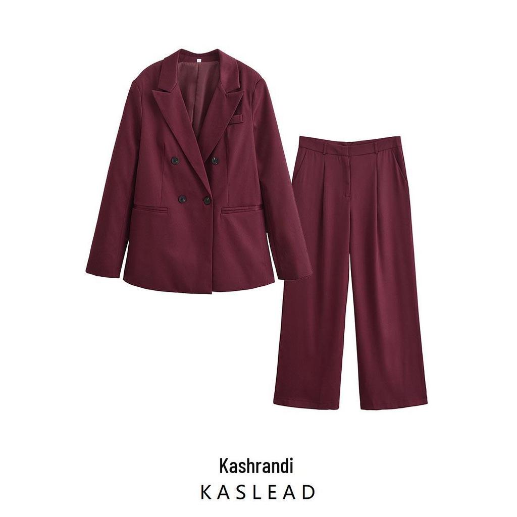Elevate your wardrobe with this fashionable Spring 2025 women's suit, featuring a sophisticated European & American style. The double-breasted blazer is designed with solid patterns and is adorned with practical pockets, adding both elegance and functionality to the ensemble. Crafted from high-quality polyester, this suit offers comfort and durability, making it a perfect choice for any occasion. The inclusion of casual pants completes the modern look, seamlessly blending professionalism with relaxed style.