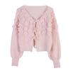 Chic Handmade French Style V-Neck Crochet Sweater for Women - Autumn/Winter Collection