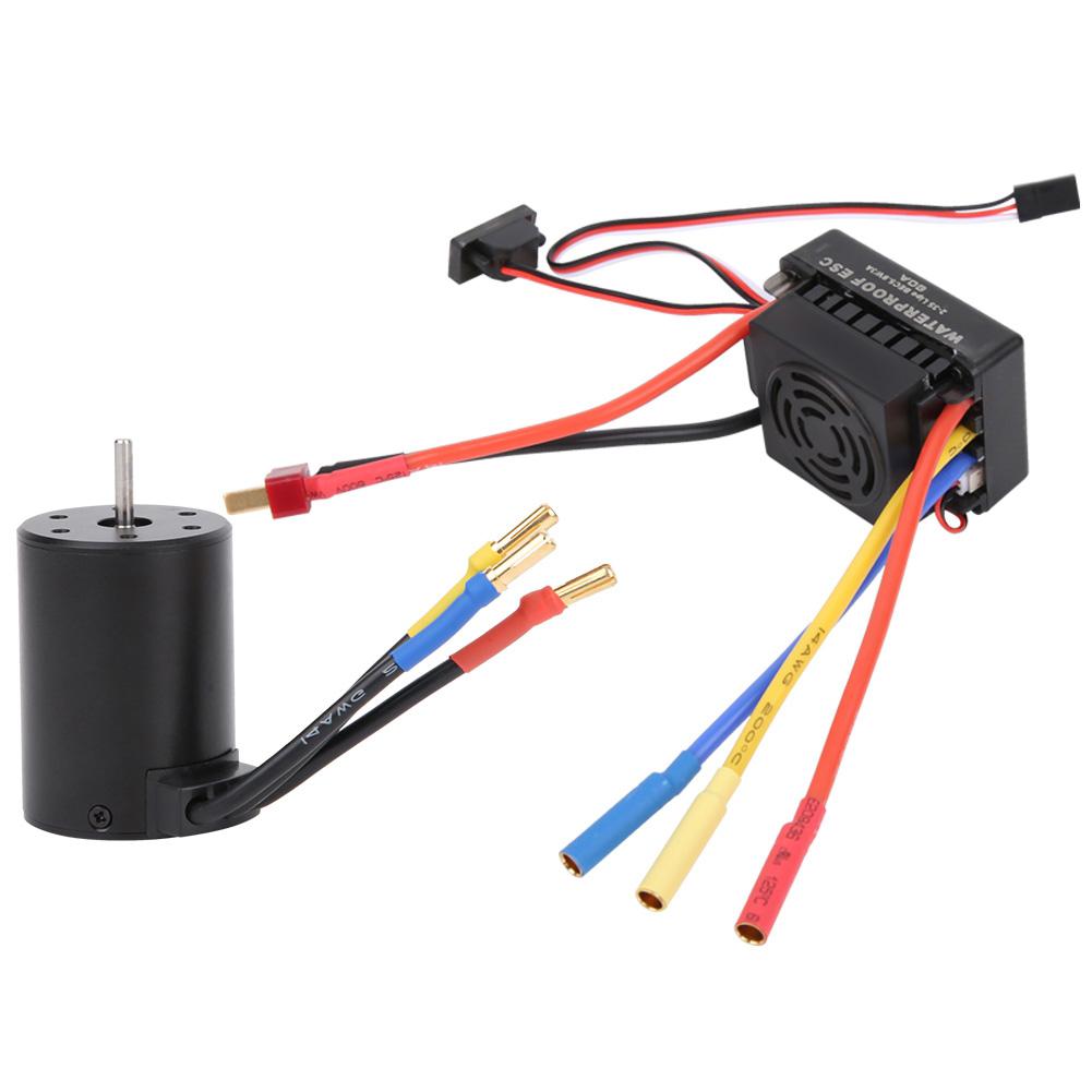 Waterproof Brushless Motor 3650 3500KV with 60A ESC Set 4mm Golden Banana Plug for 1/10 RC Car