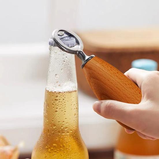 Ergonomic Wooden Handle: Featuring a sturdy wooden handle with an elegant wood grain finish, this bottle opener provides a comfortable grip for easy handling. Its stylish design adds a touch of sophistication to your kitchen or bar setup, enhancing your beverage opening experience.