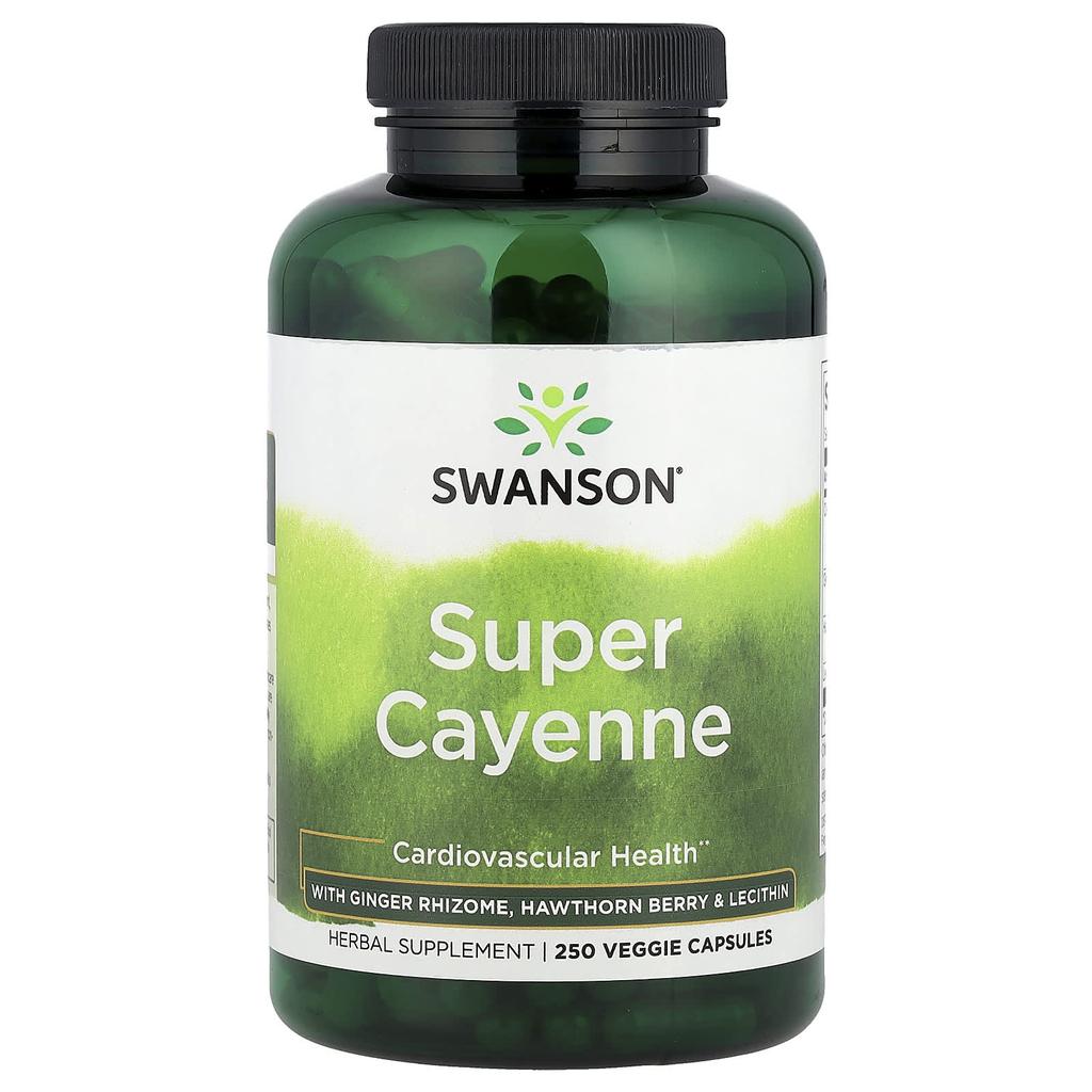 Cayenne is more than just a favorite culinary spice. Swanson Super Cayenne in supplement form helps maintain healthy circulation and promote cardiovascular health. This unique formula contains 225 mg of cayenne with ginger root, hawthorn berry, and lecithin to help support heart health.
