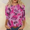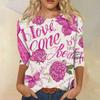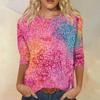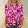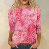 Women's Fashion Casual Seven Split Sleeve Printed Loose Round Neck Top