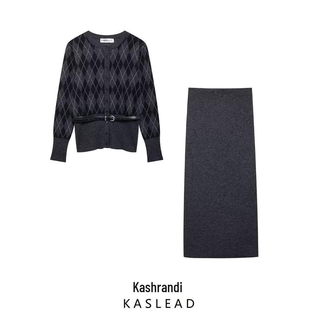 This fashionable knit cardigan and half skirt set is perfect for autumn styling, inspired by European and American trends. Made entirely from high-quality polyester, it features a chic design with long sleeves that offer comfort and elegance. Ideal for various occasions, this stylish ensemble effortlessly combines comfort with contemporary fashion.