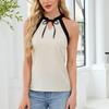 Women's Fashionable Round Neck Color Blocked Hanging Neck Vest Sleeveless Temperament Top