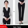Elevate your professional wardrobe with this sleek and stylish sleeveless vest and pants set, designed specifically for the modern hotel manager. Crafted from high-quality polyester, this set offers a comfortable fit and a polished appearance that is perfect for any professional setting. The black vest features a tailored silhouette, providing a sophisticated touch, while the matching pants offer a streamlined look with a flattering fit. Ideal for creating a professional and confident impression, this ensemble effortlessly combines functionality with elegance.