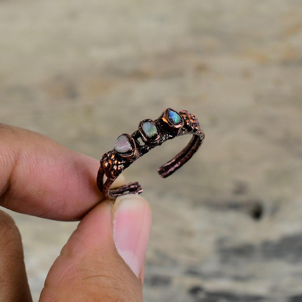 Ethiopian Opal Ring Electroformed Copper Ring Adjustable Ring Handmade Copper Jewelry Real Gemstone Ring Gifts For Him Electroformed Jewelry