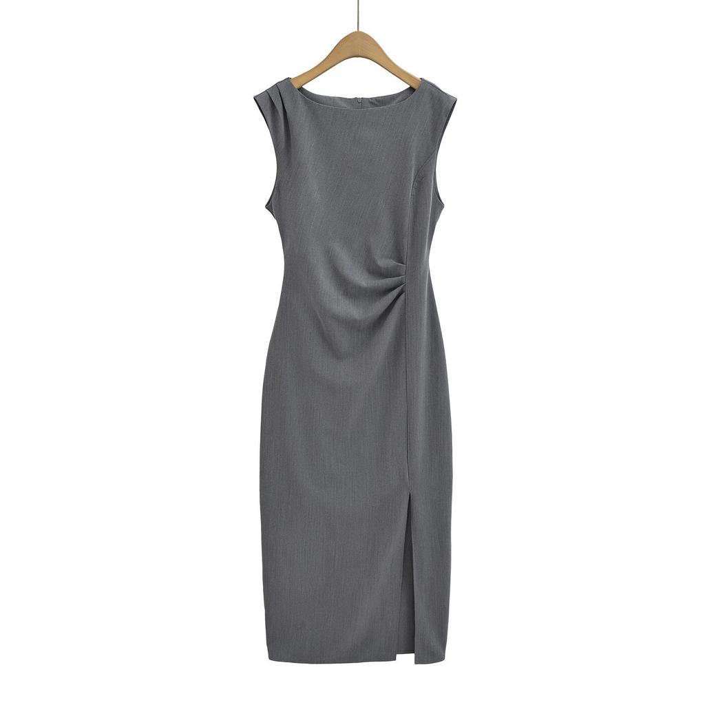 2025 Spring Women's Slim Waist Pleated Midi Dress