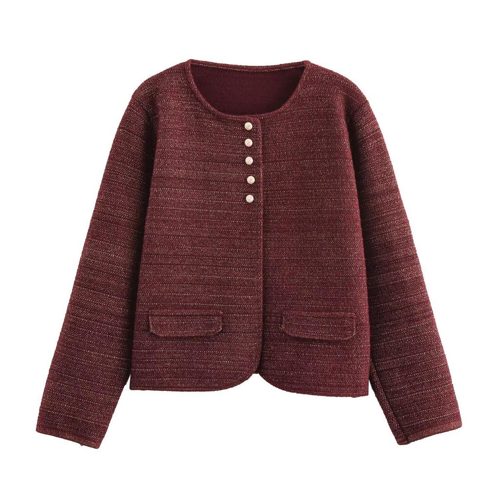2024 Autumn Women's European & American Style Gold Thread Knit Cardigan Sweater