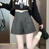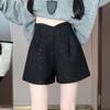 Women's Winter 2024 Black Woolen High-Waisted Wide-Leg Bootcut Shorts
