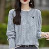 2025 Women's Fashion Color Block Knitted Cardigan: Round Neck, Fake Two-Piece, Embroidered Cable Knit Sweater