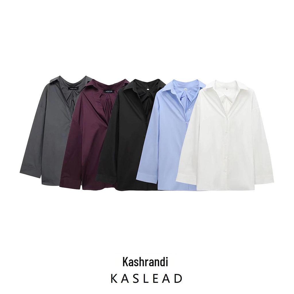 Embrace the blend of European and American style with this chic winter fashion staple. Designed for the modern woman, this loose-fitting shirt features a stylish pleated back, adding a touch of flair to your seasonal wardrobe. Crafted entirely from high-quality polyester, it offers both comfort and durability. The long sleeves provide warmth during cooler months, while the tailored neckline adds an elegant finishing touch to this versatile piece. Perfect for any occasion, this shirt can effortlessly transition from casual to more refined settings.