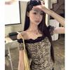 Summer 2025 Women's Leopard Print One-Shoulder Short Sleeve Slim Fit Top