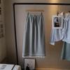 Bi Zheng 2025 Korean Style Lace Trim Slimming Midi Skirt with Slit for Women