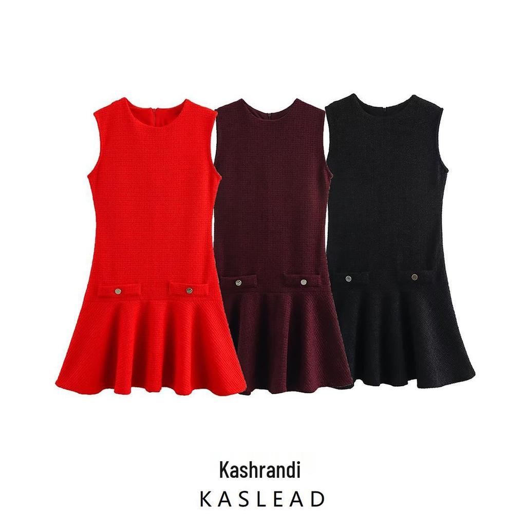 Spring 2025 Women's Textured Sleeveless Crew Neck Dress - European & American Style