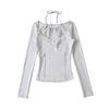 2025 Spring/Summer Women's Slim Fit Halter Neck Long Sleeve Lace Top