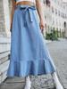 High-Waist Denim Midi Skirt with Ruffle Pleats for Women