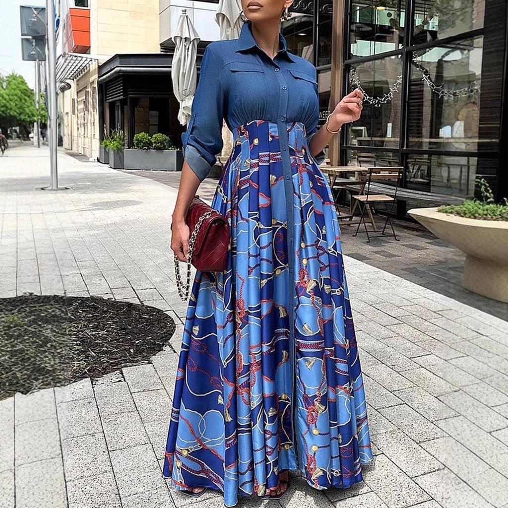 This stylish plus-size long skirt combines casual comfort with a trendy design, featuring a unique denim patchwork print. Crafted from high-quality denim, the skirt is designed to offer a large swing dress silhouette, providing both a flattering fit and ease of movement. Perfect for any casual outing, this skirt is a versatile addition to any wardrobe, offering a chic blend of contemporary style and classic denim appeal.