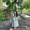Summer 2025 Green Halter Frog Button Dress - Sleeveless, Loose Tea Length National Style