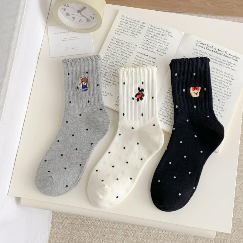 Cartoon-embroidered Mid-top Girls' Fashionable and Versatile Cotton Socks, Simple and Simple Commuting Style, Cute Girls' Long Socks