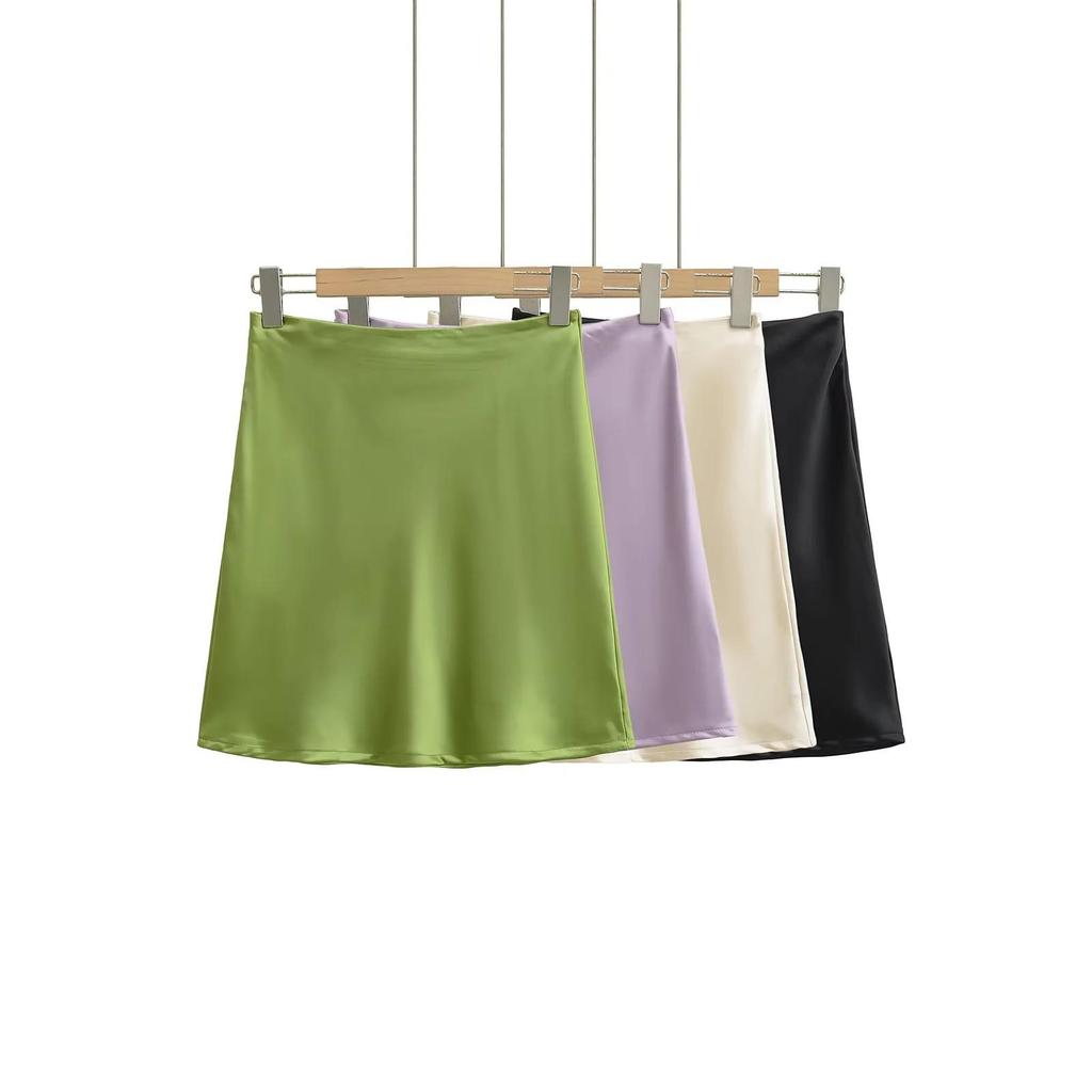 2025 Summer French Retro Satin Acetate A-line Mini Skirt with Side Zipper