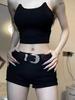 Trendy Women's Black Denim Low-Waist A-line Shorts, Summer 2025 Korean Style