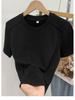 Experience effortless style with this Women's Summer Straight Shoulder T-shirt. Crafted from pure cotton, it offers supreme comfort and breathability for warm weather. The T-shirt features a distinctive irregular hem that adds a unique flair to your ensemble. With short sleeves and a classic round neckline, this piece is a versatile addition to any summer wardrobe. Perfect for casual outings or relaxed settings, it pairs well with your favorite jeans or skirts for a chic and trendy look.