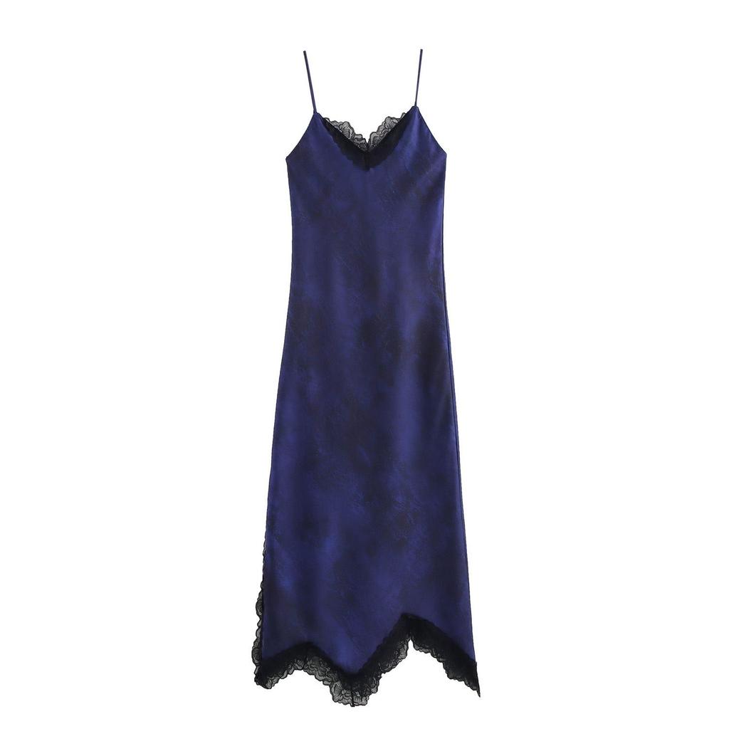 This elegant women's mid-length camisole dress is part of the Spring/Summer Collection and features a stylish European-American design. Crafted from high-quality polyester, it ensures a comfortable and lightweight fit, perfect for the warmer seasons. The dress is accentuated with delicate lace trim, adding a touch of sophistication and femininity to the overall look. Its versatile style makes it suitable for various occasions, from casual outings to more formal events.