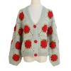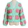 Hand-Crocheted 3D Rose V-Neck Cardigan - Solid Color, Long Sleeve, Openwork Design, Ideal for Spring & Autumn.