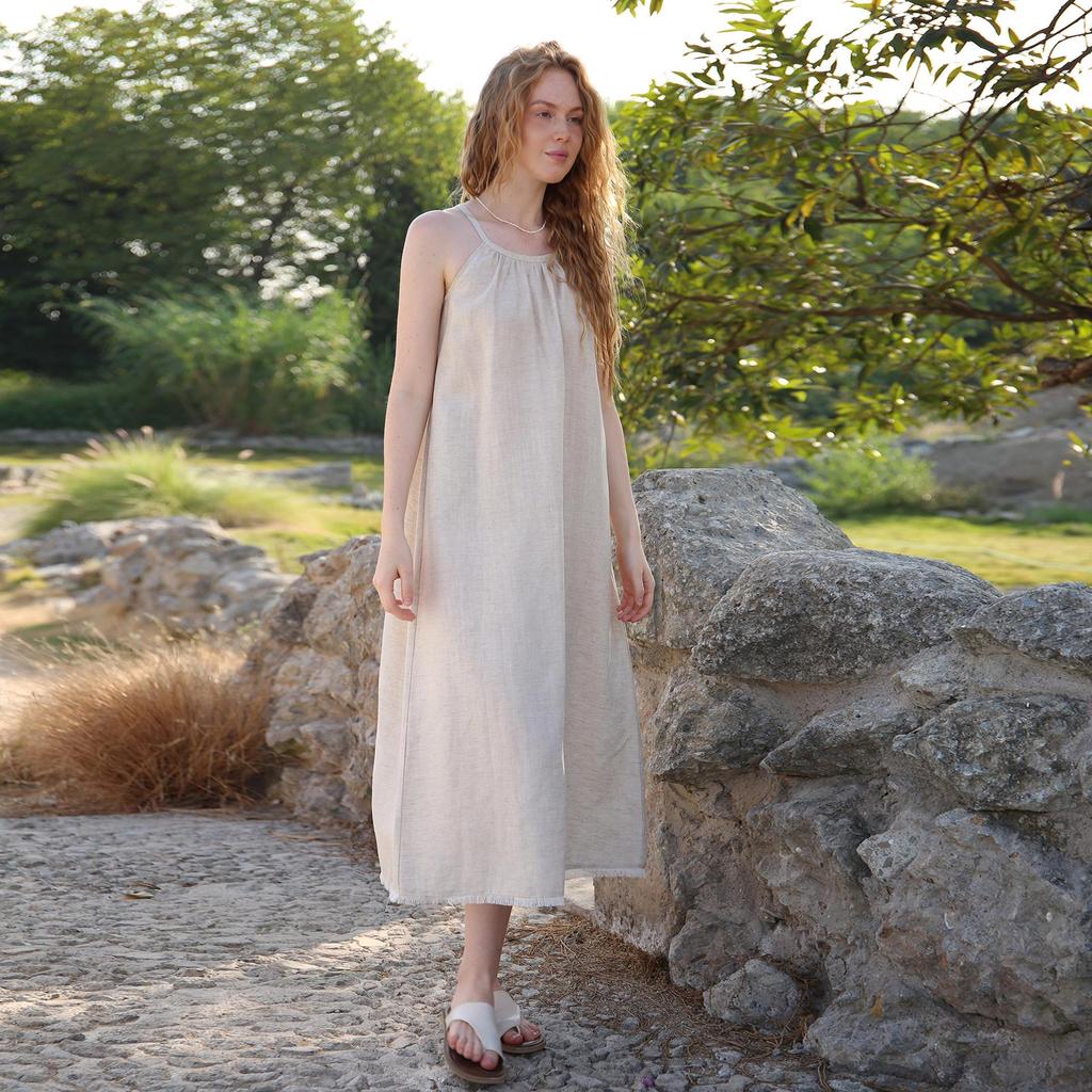 Women's 2025 Spring/Summer French Tassel Spaghetti Strap Tencel Linen Beach Dress