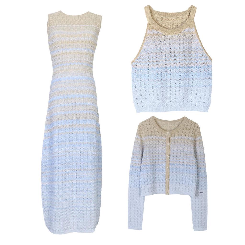 S Family Women's French Sweet Wave Striped Knitted Cardigan Vest Dress for Spring/Summer