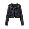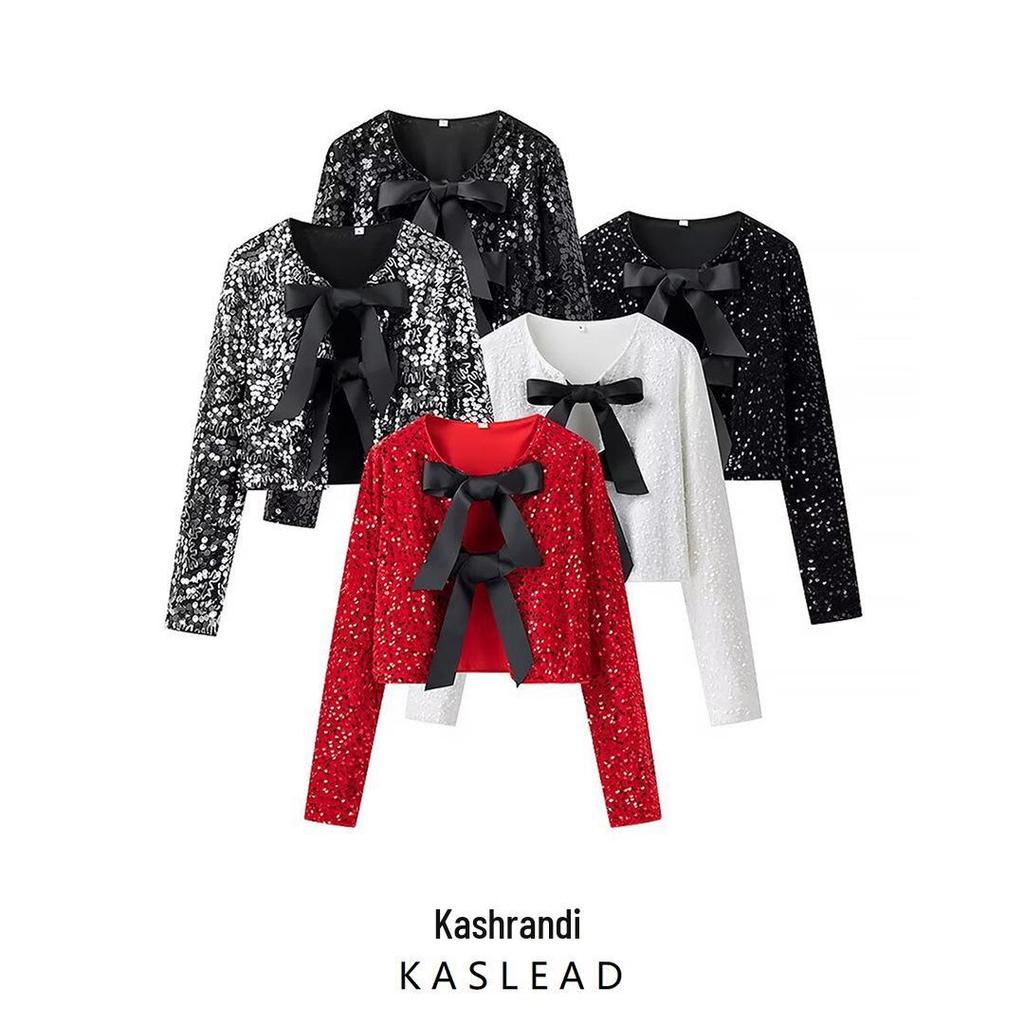 Embrace timeless elegance with this Women's European & American Style Versatile Bow Sequin Top, perfect for your spring wardrobe. Expertly crafted from high-quality polyester, this top offers both comfort and style. It features a classic round neckline and long sleeves, making it a versatile addition to your wardrobe. The standout bow sequin detail adds a touch of glamour, making it suitable for both casual outings and special occasions. Designed for the modern woman, this top effortlessly combines fashion and function.