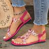 European and American New Butterfly Rhinestone Flat Bottom Square Head Fish Mouth Sandals Elastic Band Hollow Beach Cool Slippers Large Size