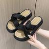 Retro One-word Platform Slippers 2025 Summer New Shoes Fashion Casual Middle Heel Women's Shoes Versatile Sandals