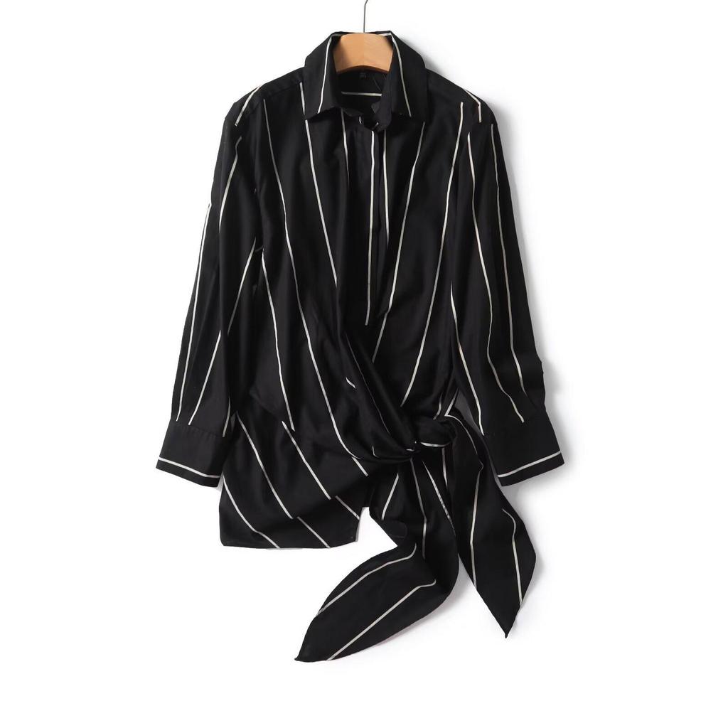 2025 Spring Women's Tie-Up Striped Turn-Down Collar Long-Sleeve Shirt - Versatile Commuter Fashion
