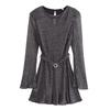 Spring 2025 Women's European & American Style Casual Pleated Dress with Simple Round Neck