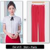 This professional uniform shirt is designed for front desk and service staff, catering to both men and women. Made from high-quality polyester, it ensures durability and comfort throughout the workday. The shirt features short sleeves, providing ease of movement and a polished appearance suitable for any professional setting.