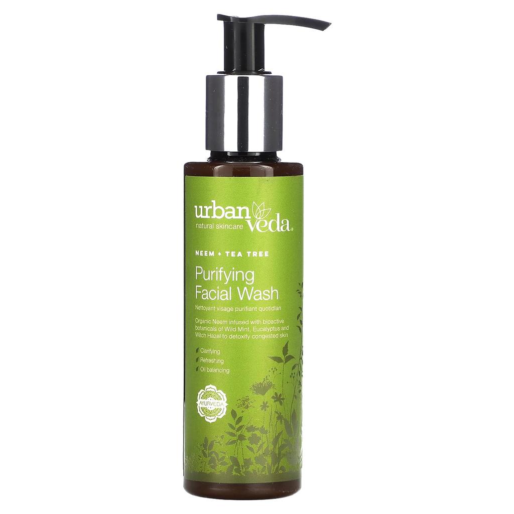 A purifying gel facial wash with refreshing and cooling witch hazel, bearberry and mulberry. Certified Organic Neem and Tea Tree combine with plant-based cleansers and pure essential oils of wild mint, eucalyptus and spear sweet orange to cleanse and hydrate oily and congested skin, leaving it feeling clearer and fresher.