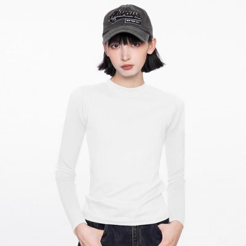 Spring/Summer Women's Slim Fit Mulberry Silk Crew Neck Long Sleeve Base Layer T-Shirt - White