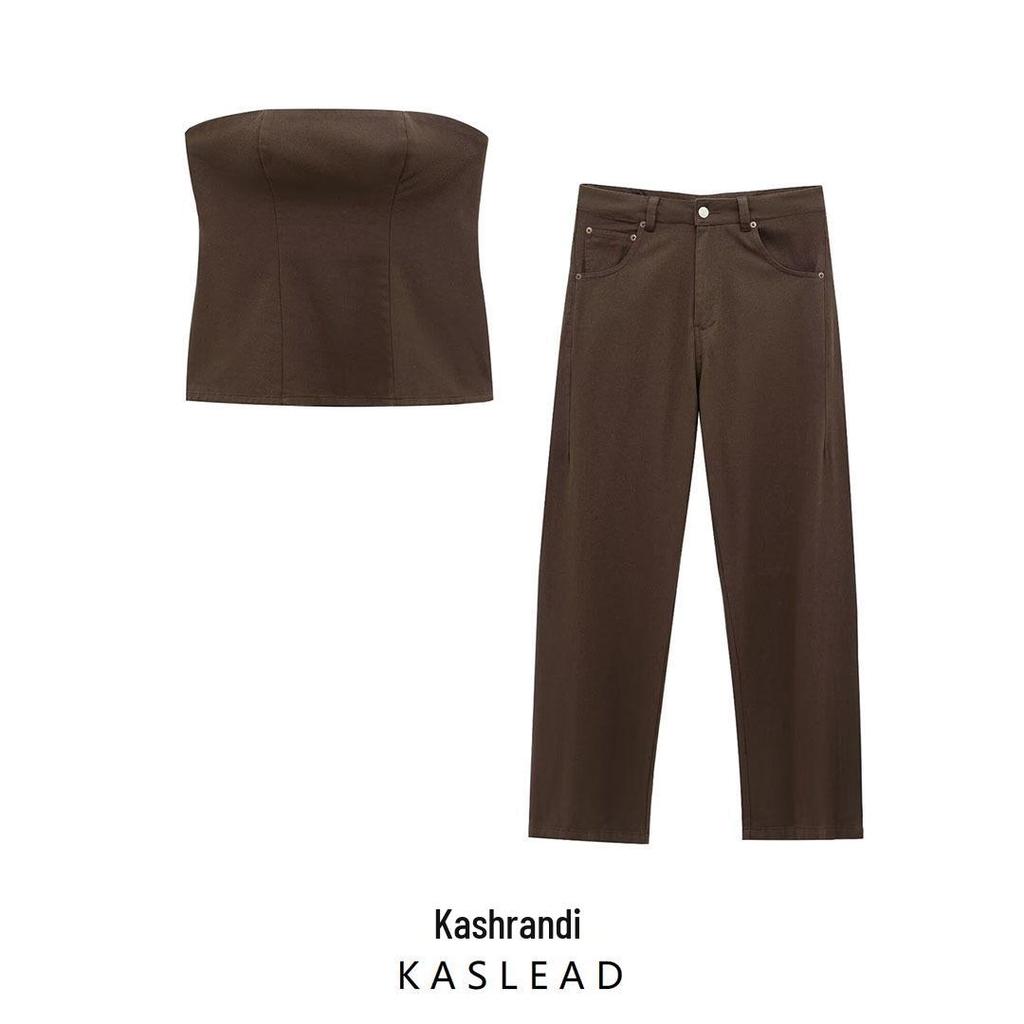 Discover the perfect blend of contemporary fashion and timeless design with this women's denim bandeau top paired with long pants. Crafted with high-quality polyester material, this stylish ensemble offers both comfort and durability. The fashion-forward set is ideal for those looking to add a touch of European and American flair to their spring wardrobe. Whether you're dressing up for a special occasion or keeping it casual, this set provides versatile elegance and a chic, modern look.