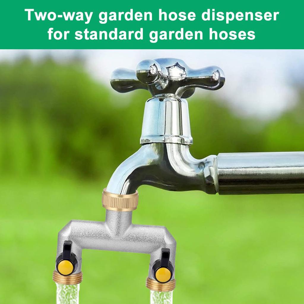 Portable Sturdy Brass Faucet Diverters with Double Water Flows Control for Outdoor Garden Irrigations Systems Use