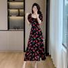 Embrace the gentle style of the upcoming season with this elegant dress, featuring a charming rose print that exudes sophistication. The design includes a stylish French square neck, offering a timeless aesthetic that flatters any silhouette. Crafted with care and attention to detail, this dress is perfect for both casual outings and special occasions. The absence of fur ensures a versatile and comfortable wear, delivering a chic look with a touch of floral grace.