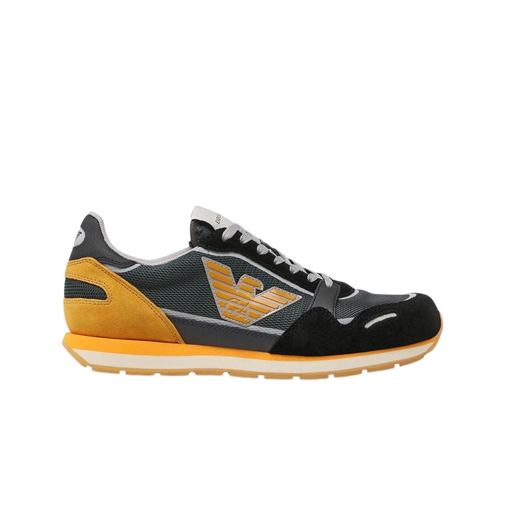 Emporio Armani Logo Patch Sneakers With Suede Black Dark Grey Yellow