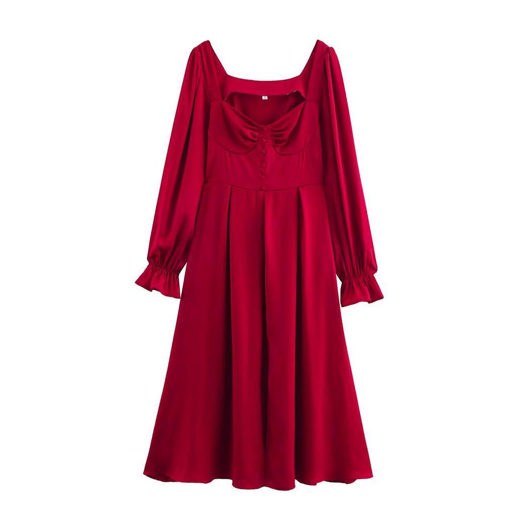 Discover effortless elegance with this women's dress, perfect for the 2025 spring season. Influenced by both European and American fashion trends, this dress features a chic simple French square neck that exudes sophistication. Designed with long sleeves and a loose fit, it offers comfort and style for any occasion. Crafted from high-quality polyester, this dress is both durable and lightweight, making it an ideal choice for those seeking both fashion and functionality.
