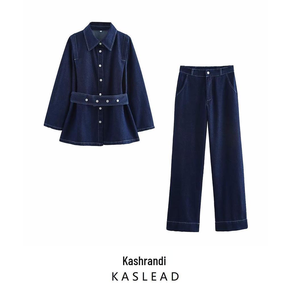 Discover the perfect blend of style and comfort with this women's fashion ensemble, designed for the Spring 2025 collection. This outfit features a loose belted top paired with high-waist long pants, crafted entirely from high-quality polyester, offering a sleek and fashionable look. The thoughtful addition of pockets enhances functionality while maintaining a chic aesthetic, making it a versatile choice for both European and American fashion enthusiasts.