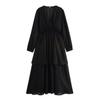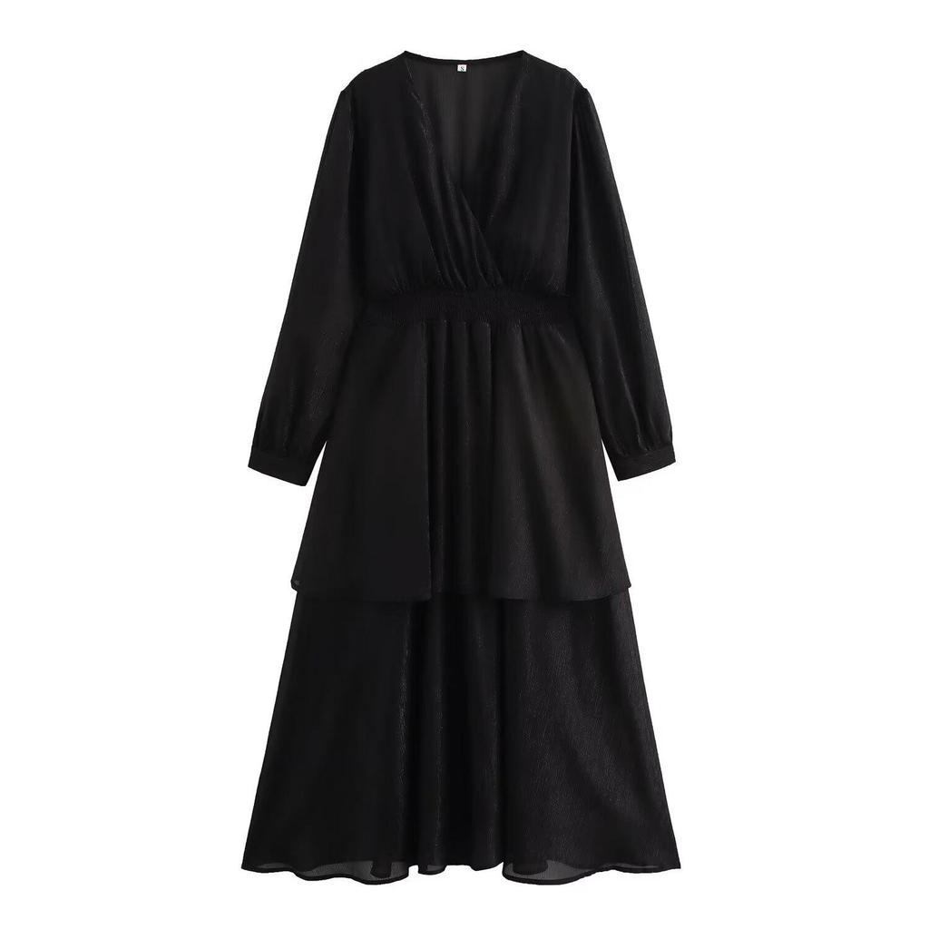 Experience effortless elegance with this women's chiffon dress, perfect for the spring season. Designed with a flattering V-neckline, this long dress features shimmering gold and silver threads that add a touch of sophistication. Crafted from high-quality polyester, it offers both comfort and style for any casual occasion. The lightweight and breathable fabric make it an ideal choice for a day out or an evening event.